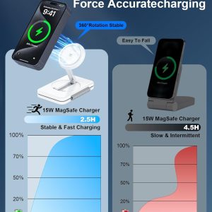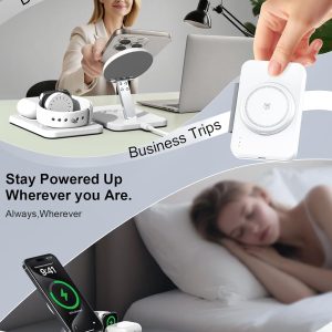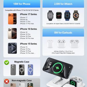 3 in 1 Magnetic Wireless Charger for Apple Multiple Devices, Foldable Fast Charging Station – Magsafe Charger Stand, Travel Charger Pad for iPhone 17 16 15 14 13 12 Series/Apple Watch/AirPods Pro